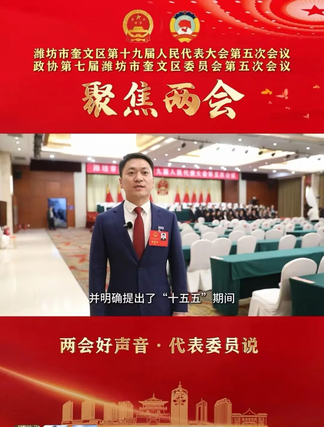 在潍坊市奎文区第十九届人民代表大会第五次会议上,潍坊眼科医院行政院长肖鹏作为奎文区人大代表参会。他认真听取各项工作报告、依法参与选举,积极传递基层声音、反映民意诉求,并作为开幕组代表接受媒体采访,切实履行人大代表职责。