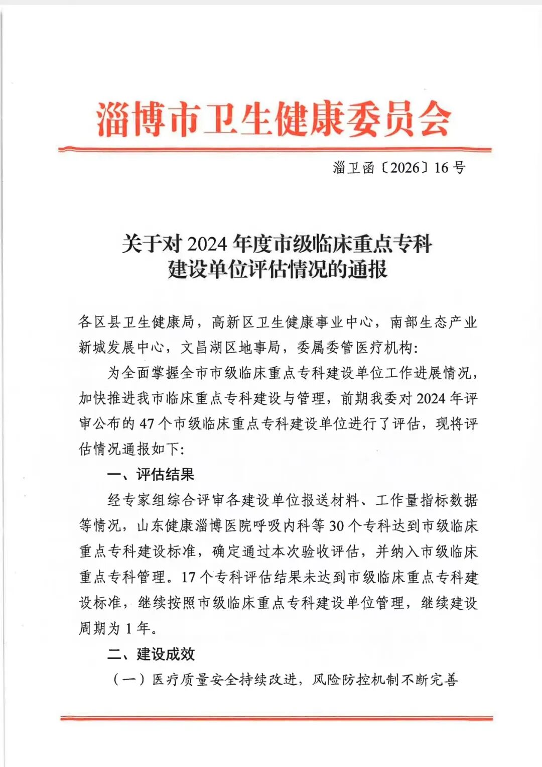 新年伊始,喜讯传来。近日,淄博市卫生健康委员会正式下发文件,确认我院眼科为“淄博市市级临床重点专科”。这是对我院技术实力与服务水平的...